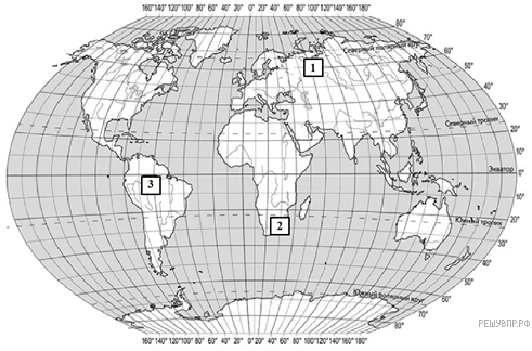 Ответ: 1 — умеренный; 2 — субтропический (южного полушария); 3 — экваториальный.