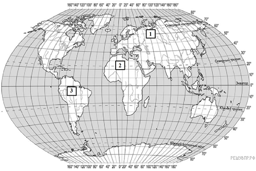 Ответ: 1 — умеренный; 2 — тропический; 3 — экваториальный.