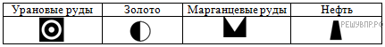 На рисунке представлены значки, которыми обозначаются месторождения полезных ископаемых на географических картах.