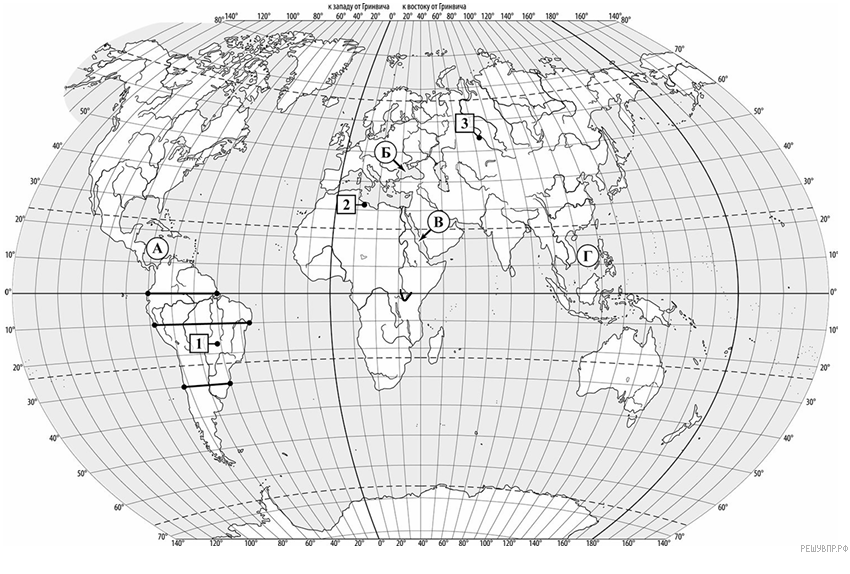 Задание на знание Физической карты мира. Красное море обозначено буквой В.