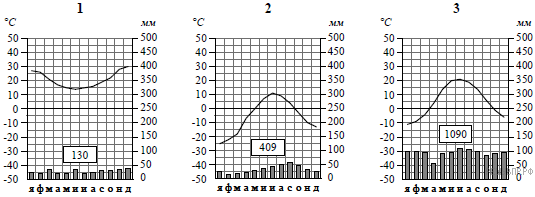 Выберите климатограмму, соответствующую климатическим особенностям указанной Вами природной зоны. Укажите в ответе её номер.
