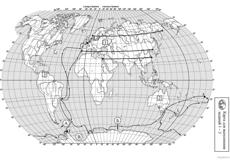 Гибралтарский пролив, Средиземное море, Южный полярный круг, Северный полярный круг, море Уэдделла, пролив Дрейка.