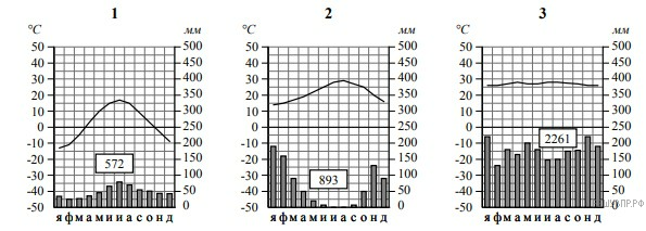Выберите климатограмму, соответствующую климатическим особенностям указанной Вами природной зоны. Укажите в ответе её номер.
