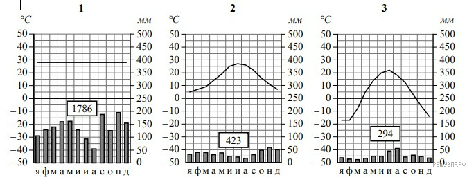 Выберите климатограмму, соответствующую климатическим особенностям указанной Вами природной зоны. Укажите в ответе её номер.