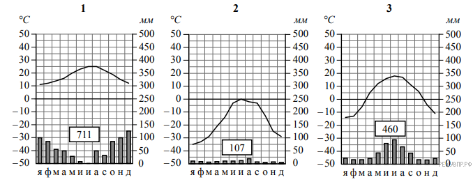 Выберите климатограмму, соответствующую климатическим особенностям указанной Вами природной зоны. Укажите в ответе её номер.