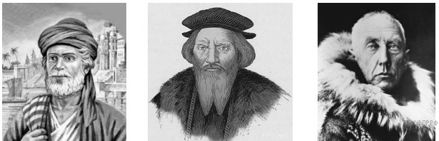 На карте мира изображён маршрут экспедиции одного из путешественников, портреты которых представлены ниже. Рассмотрите карту и портреты путешественников и выполните задания.