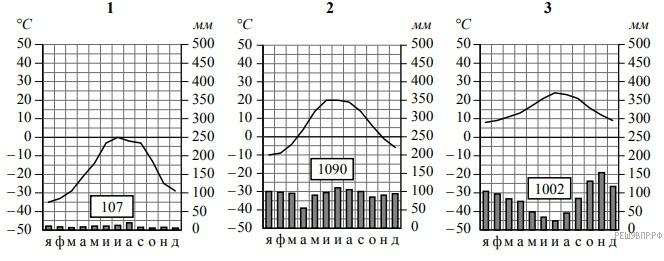 Выберите климатограмму, соответствующую климатическим особенностям указанной Вами природной зоны. Укажите в ответе её номер.
