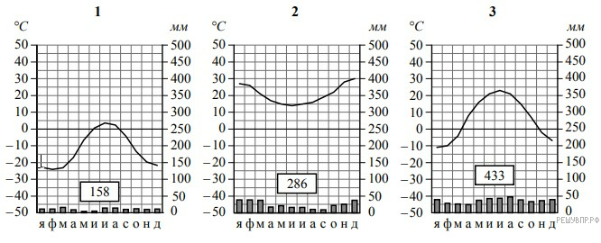 Выберите климатограмму, соответствующую климатическим особенностям указанной Вами природной зоны. Укажите в ответе её номер.