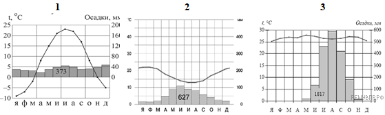 Выберите климатограмму, соответствующую климатическим особенностям указанной Вами природной зоны. Укажите в ответе её номер.