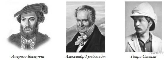 На карте мира, изображён маршрут экспедиции одного из путешественников, портреты которых представлены ниже. Рассмотрите карту и портреты путешественников и выполните задания.