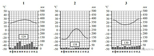 Выберите климатограмму, соответствующую климатическим особенностям указанной Вами природной зоны. Укажите в ответе её номер.