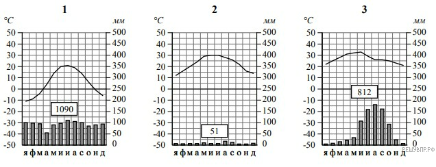 Выберите климатограмму, соответствующую климатическим особенностям указанной Вами природной зоны. Запишите в ответе её номер.