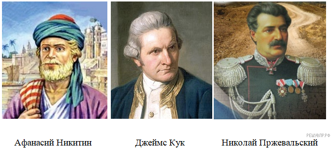 На карте мира, изображён маршрут экспедиции одного из путешественников, портреты которых представлены ниже. Рассмотрите карту и портреты путешественников и выполните задания.