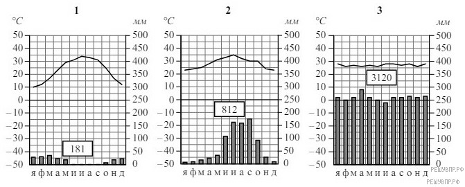Выберите климатограмму, соответствующую климатическим особенностям указанной Вами природной зоны. Укажите в ответе её номер.