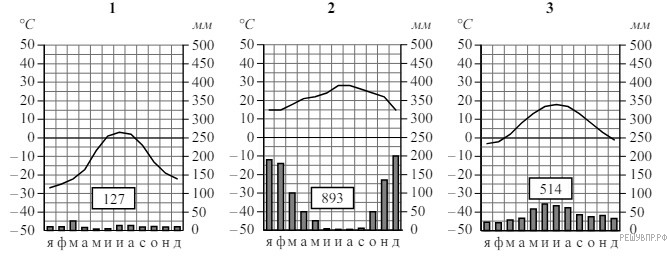 Выберите климатограмму, соответствующую климатическим особенностям указанной Вами природной зоны. Укажите в ответе её номер.