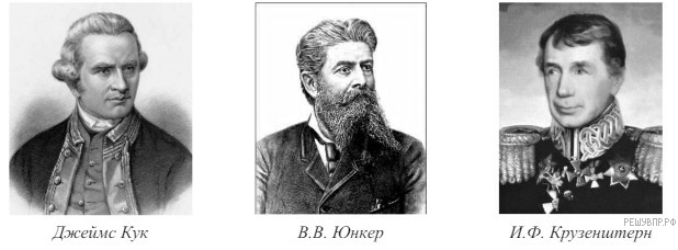 На карте мира, приведённой на странице 2, изображён маршрут экспедиции одного из путешественников, портреты которых представлены ниже. Рассмотрите карту и портреты путешественников и выполните задания.