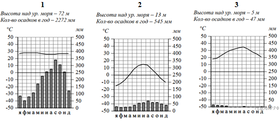 Выберите климатограмму, соответствующую климатическим особенностям указанной Вами природной зоны. Укажите в ответе её номер.