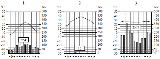 Выберите климатограмму, соответствующую климатическим особенностям указанной Вами природной зоны. Укажите в ответе её номер.