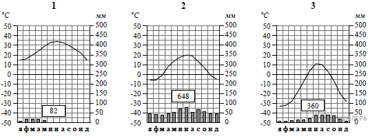 Выберите климатограмму, соответствующую климатическим особенностям указанной Вами природной зоны. Укажите в ответе её номер.
