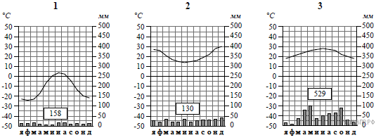 Выберите климатограмму, соответствующую климатическим особенностям указанной Вами природной зоны. Укажите в ответе её номер.