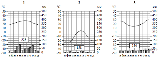 Выберите климатограмму, соответствующую климатическим особенностям указанной Вами природной зоны. Укажите в ответе её номер.