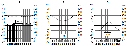 Выберите климатограмму, соответствующую климатическим особенностям указанной Вами природной зоны. Укажите в ответе её номер.