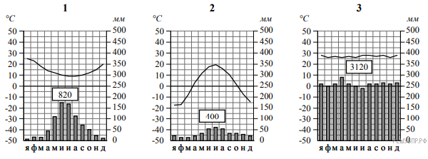 Выберите климатограмму, соответствующую климатическим особенностям указанной Вами природной зоны. Укажите в ответе её номер.
