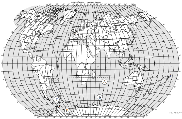 На карте буквами обозначены объекты, определяющие географическое положение указанного Вами материка. Запишите в таблицу названия этих объектов.