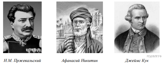На карте мира изображён маршрут экспедиции одного из путешественников, портреты которых представлены ниже. Рассмотрите карту и портреты путешественников и выполните задания.