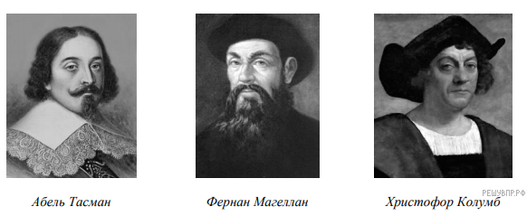 На карте мира изображён маршрут экспедиции одного из путешественников, портреты которых представлены ниже. Рассмотрите карту и портреты путешественников и выполните задания.