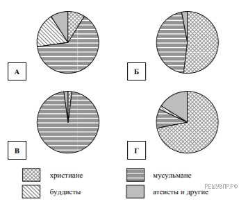 Определите, религиозный состав населения какой страны отражает каждая диаграмма.