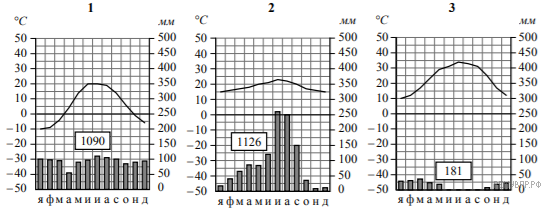 Выберите климатограмму, соответствующую климатическим особенностям указанной Вами природной зоны. Укажите в ответе её номер.