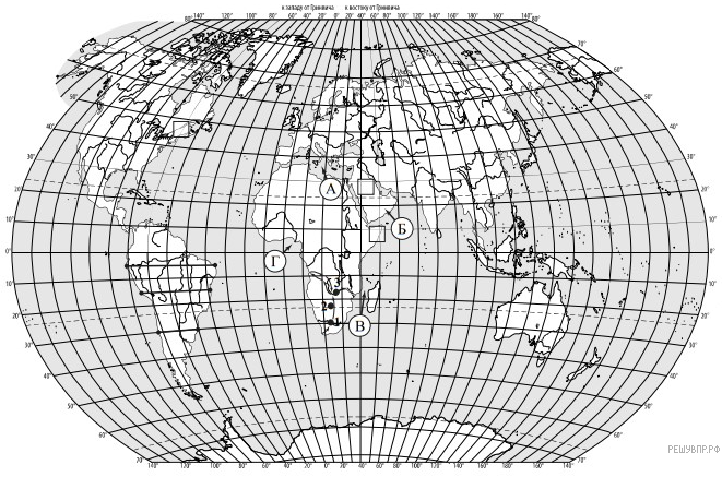 На карте буквами обозначены объекты, определяющие географическое положение указанного Вами материка. Запишите в таблицу названия этих объектов.