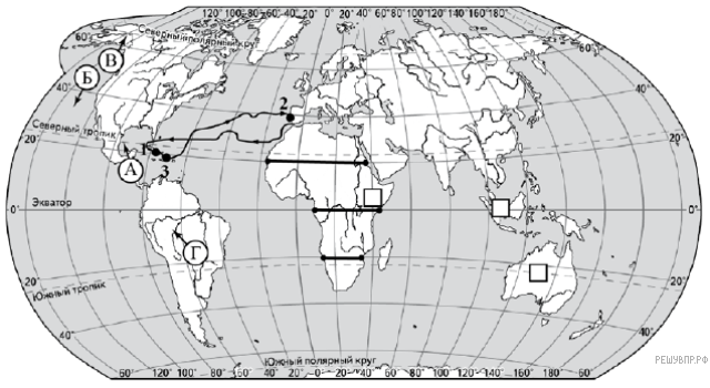 На карте мира, приведённой на странице 2, изображён маршрут экспедиции одного из путешественников, портреты которых представлены ниже. Рассмотрите карту и портреты путешественников и выполните задания.