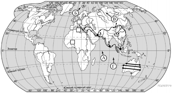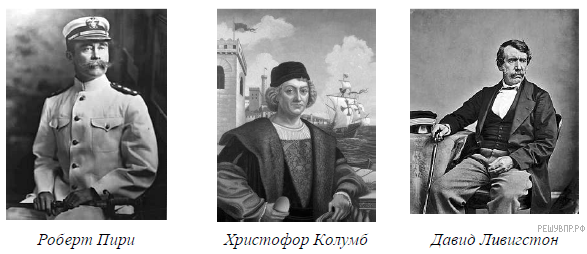 На карте мира изображён маршрут экспедиции одного из путешественников, портреты которых представлены ниже. Рассмотрите карту и портреты путешественников и выполните задания.